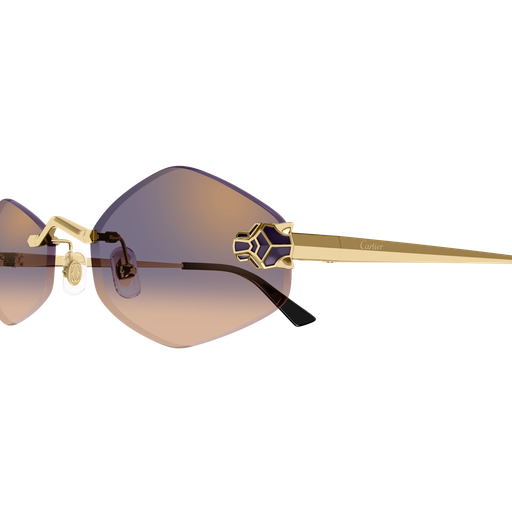 Déclinaison de Panthère Classic inspirée de la collection de maroquinerie de la Maison, caractérisée par la tête tridimensionnelle du félin avec des détails en émail sur les charnières. Forme hexagonale percée moderne, pour un look tendance et iconique. Tête de panthère ornée de détails en émail assortis à la couleur des verres et finition précieuse en or. Manchons en acétate pour garantir plus de confort